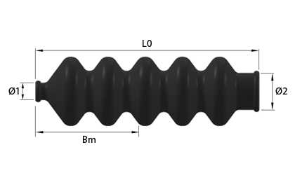 Mjera L0 (duljina bez opterećenja) služi samo kao smjernica. Gumeni mijeh se po konstrukciji može povlačiti i pritiskati i tako mijenjati duljinu.